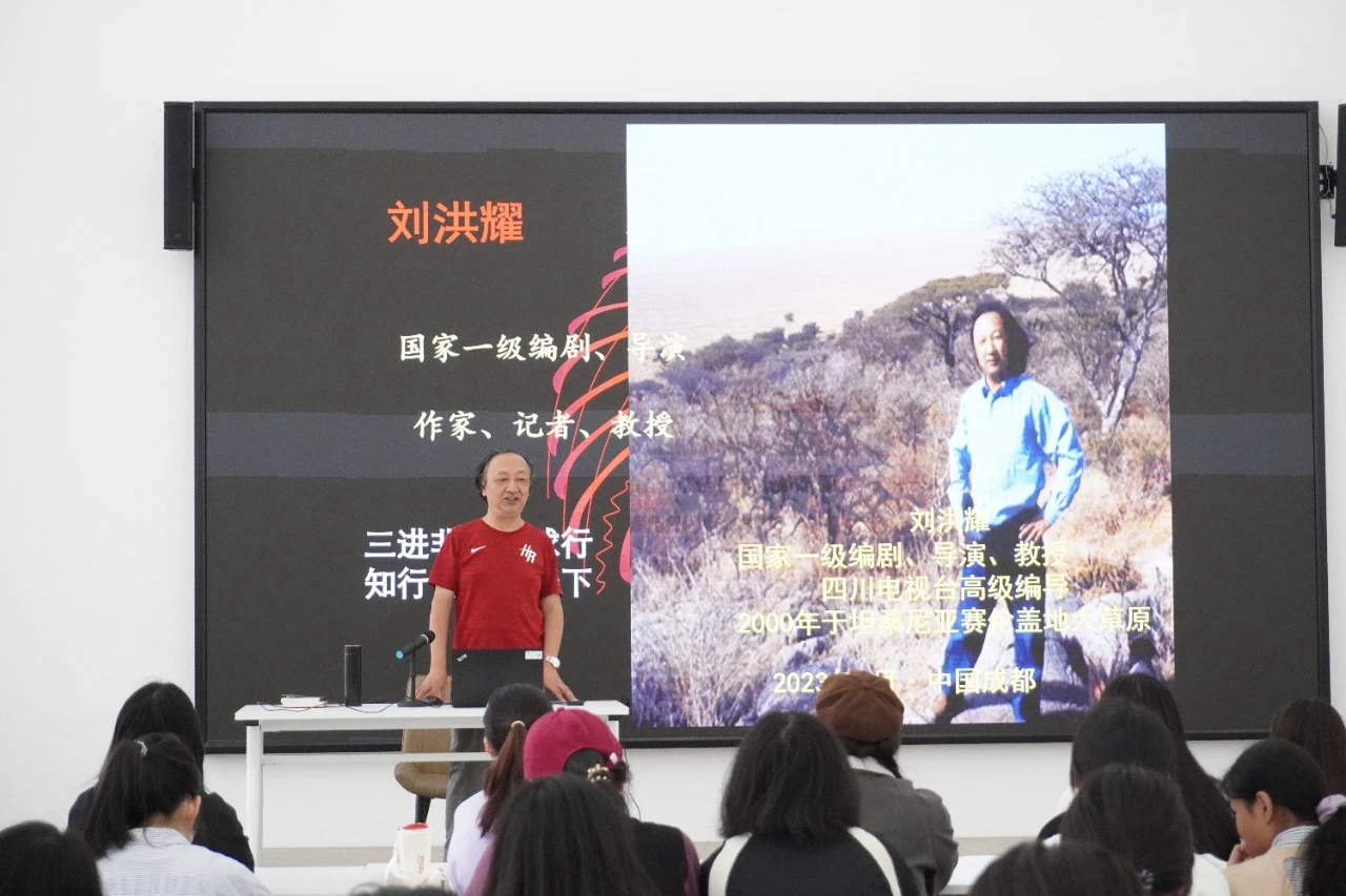 10月8日下午,原四川电视台高级编导、中国第一位环球采访的电视记者,曾经三度深入非洲多国历险采访,有深厚东非洲亲历背景的刘洪耀老师,作客之江学院,讲述自己东非采访和他以非洲采访内容为蓝本创作小说《混血儿》、《笑傲东非》的传奇经历。